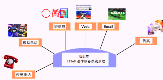 居民利用電話、傳真、手機等撥打某一特服號碼(如12348)進入地級市法律服務熱線系統(tǒng),本系統(tǒng)依托地級市司法行政部門/法院各類業(yè)務技術支持系統(tǒng)和網(wǎng)絡系統(tǒng),通過人工受理或自動語音服務等方式全天24小時不間斷地為人民群眾提供各種法律服務;形成了對外服務于百姓的無形窗口,對內管理、分析、決策系統(tǒng)相結合的多媒體呼叫中心。