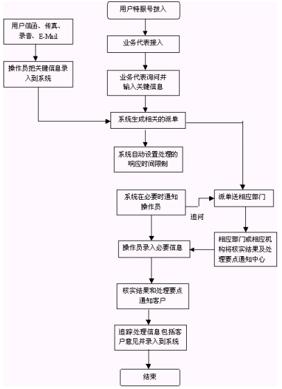 業(yè)務受理時限設置:對各類用戶進行分類分級、對數(shù)據(jù)庫中的用戶信息進行維護、對不同的用戶設定不同的服務等級:特別服務、優(yōu)先服務和統(tǒng)一服務、對用戶的呼叫根據(jù)優(yōu)先級進行排隊。