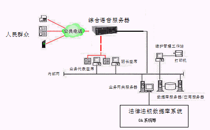 該系統(tǒng)的設計采用先進的三層CLIENT/SERVER網(wǎng)絡體系結構,集目前先進的計算機技術、通信技術、計算機電信集成(CTI)技術、多媒體呼叫接入技術、智能接入交換分配技術、數(shù)字語音處理技術、異構系統(tǒng)信息交互技術、INTERNET網(wǎng)絡技術、安全容錯技術、網(wǎng)絡組網(wǎng)技術等于一體,并與地級市司法行政部門/法院已有技術支持系統(tǒng)(如MIS系統(tǒng)、法律法規(guī)數(shù)據(jù)庫系統(tǒng)等)緊密結合在一起,突破時空的限制,通過人工座席、自動語音/傳真、司法部門相關人員等為群眾提供電話、傳真、手機等多種服務形式的周到、快捷、全方位的法律服務,為人民群眾與地級市司法行政部門/法院之間架起一座密切聯(lián)系的橋梁。