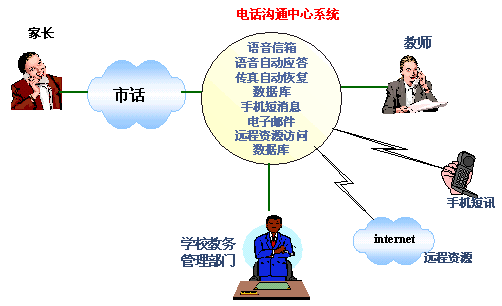 為此,很多學(xué)校都建立了自己的網(wǎng)站來作為對外宣傳和溝通的窗口,同時,不少學(xué)校還建立了校園網(wǎng),但僅僅通過INTERNET來獲取相應(yīng)的學(xué)生信息和學(xué)校信息是不夠的,畢竟不是每個家長都上網(wǎng)的,就算上網(wǎng)也只是偶爾,不能達(dá)到和學(xué)校經(jīng)常溝通的效果,尤其是在不很發(fā)達(dá)的地區(qū)這種現(xiàn)象尤為明顯。因此學(xué)校與家長的溝通必須建立在一種十分普及的通訊方式基礎(chǔ)上,而當(dāng)前最為普及的通訊方式莫過于電話了。