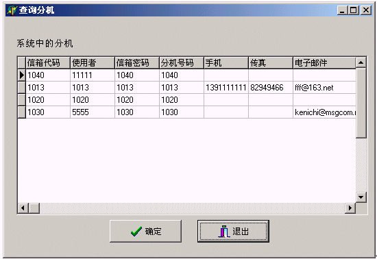 博宇科技自動(dòng)總機(jī)語音信箱系統(tǒng)BYEVMS2.0產(chǎn)品維護(hù)程序用于電話分機(jī)管理、管理員工的語音信箱、Email管理等操作,部分界面如下: