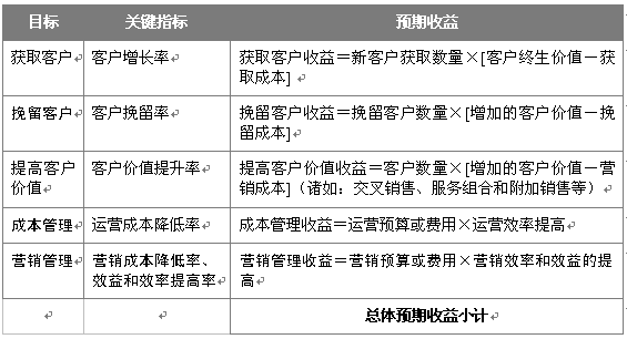 "效益目標" 這一戰(zhàn)略考慮是設定企業(yè)客戶關系管理戰(zhàn)略中的針對細分客戶的收益目標,與之相關聯的戰(zhàn)略重點是最大化針對細分客戶的客戶價值。這一部分將對以后工作中的客戶關系管理客戶收益提供方向和評估方法。