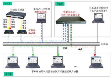 - 支持H.323和H.320等多種制式的視頻會議的錄制直播;