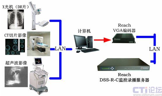 - 由于當前的大多醫(yī)療設備,如X光機、CT機均擁有網絡接口并支持,由計算機通過網絡即可采集醫(yī)療設備中的影像,并采用VGA編碼器采集計算機中的CR或DR片、CT片、演示文件(PPT、WORD、EXCEL);