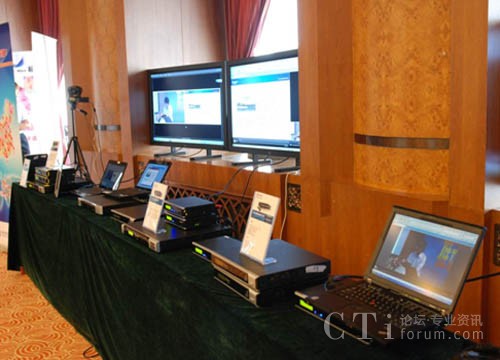 會(huì)場(chǎng)內(nèi)部搭建了產(chǎn)品展示區(qū),用4臺(tái)46寸顯示器,分別顯示分布式錄播系統(tǒng)(Beyonsys、powolive)平臺(tái),Beyonsys導(dǎo)播平臺(tái),接收導(dǎo)播后直播畫面;另用ipad接收直播,展示了桌面一體機(jī)、模塊化一體機(jī)、解碼器等相關(guān)產(chǎn)品。