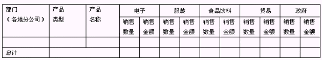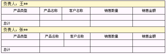 作為分公司銷售經(jīng)理,需要查看分公司每個銷售員的銷量統(tǒng)計,便于向銷售總監(jiān)做好匯報,需要同時知道不同產(chǎn)品類型的銷量?梢酝ㄟ^分組報表來實現(xiàn),如下圖: