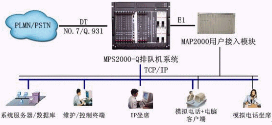 在MPS2000-P作為可編程交換機的應(yīng)用中,又以現(xiàn)有荊州萬聲的應(yīng)用最為齊全。結(jié)合了MPS2000的底層硬件資源及封裝的API函數(shù),實現(xiàn)外包式呼叫中心系統(tǒng)的二次開發(fā),采用了MPS2000的模擬坐席、IP坐席混合的接入方式,融合平臺IVR語音導(dǎo)航、接聽錄音、會議、TTS等資源,開發(fā)實現(xiàn)了一個完善的呼叫中心系統(tǒng)。
