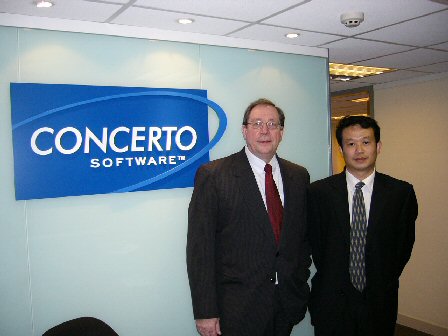 2004年10月3日-8日,Concerto全球總裁James Foy先生走訪亞洲,馬不停蹄地在6天的時間里訪問了包括中國上海在內(nèi)的5個城市,向當?shù)乜蛻、合作伙伴、媒體、專業(yè)機構以及Concerto員工闡述合并后公司的目標、戰(zhàn)略、產(chǎn)品以及服務體系,并聽取他們的意見。2004年10月8日,CTI論壇在上海Concerto中國總部對這位IT界的傳奇人物進行了專訪。
