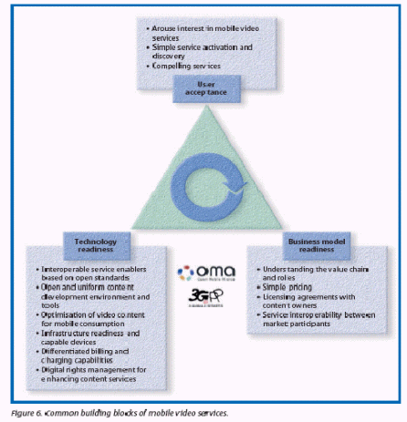 移動(dòng)視頻服務(wù)會(huì)成為其它已制定的多媒體應(yīng)用程序的一個(gè)補(bǔ)充。例如,電視并未因網(wǎng)絡(luò)的出現(xiàn)而消逝,同樣的,其它數(shù)字化或傳統(tǒng)的移動(dòng)傳輸應(yīng)用也不會(huì)因?yàn)橐苿?dòng)視頻的出現(xiàn)而消失。主要概況中略述了移動(dòng)視頻的好處。下面的文章則著眼于講述移動(dòng)視頻服務(wù)的普遍發(fā)展障礙,基于大規(guī)模市場的三個(gè)關(guān)鍵標(biāo)準(zhǔn)分別是:技術(shù)預(yù)備程度、商業(yè)模式預(yù)備程度和用戶接受程度。主要的觀點(diǎn)將做更細(xì)致的介紹。
