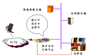 該系統(tǒng)采用微機板卡方案,在實現(xiàn)常規(guī)功能的同時與當?shù)氐慕鸷贽k公網(wǎng)建立物理聯(lián)接,充分利用已有網(wǎng)絡資源并尊重客戶原有業(yè)務習慣及流程。