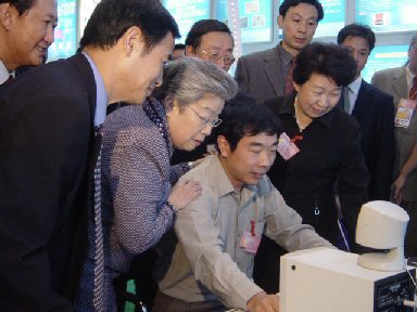 C&E 2.2、嵌入式產(chǎn)品InterSound 3.0和Talking Book電子書等。語音合成給觀眾帶來了全新的感受,流暢自然的語音合成、抑揚(yáng)頓挫的唐詩誦讀吸引了無數(shù)參觀者駐足、觀賞。國務(wù)院副總理吳儀同志參觀安徽展區(qū)時,親臨訊飛展區(qū),對訊飛的語音技術(shù)表現(xiàn)出強(qiáng)烈興趣?拼笥嶏w陳燕總監(jiān)向吳儀副總理簡要匯報了中文語音產(chǎn)業(yè)及科大訊飛公司的發(fā)展情況,并親自演示了訊飛電信級和芯片級語音產(chǎn)品。吳儀臉上不時露出微笑,鼓勵訊飛再接再厲,把民族語音產(chǎn)業(yè)做大做強(qiáng)。