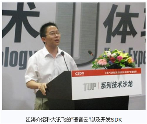 7月16日下午,CSDN TUP第十二期“移動(dòng)開發(fā)技術(shù)沙龍:次世代人機(jī)交互接口及應(yīng)用開發(fā)”在中國科學(xué)院計(jì)算技術(shù)研究所一層報(bào)告廳舉行。本次活動(dòng)邀請了微軟亞洲工程院軟件工程師馬寧、神念科技大中華區(qū)總裁張彤和科大訊飛副總裁江濤,分別在Kinect應(yīng)用開發(fā)、腦際接口技術(shù)的應(yīng)用和語音輸入交互三個(gè)方面進(jìn)行了演講和互動(dòng)。現(xiàn)場爆滿,氣氛熱烈。