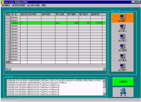 為了突破傳統(tǒng)電話會(huì)議系統(tǒng)的功能局限性,降低采用可視電話會(huì)議系統(tǒng)的高昻成本,本公司采用先進(jìn)的CTI技術(shù)和設(shè)備,推出了SmarTalk Conference電話會(huì)議系統(tǒng),具有超強(qiáng)的會(huì)議能力(同時(shí)可建立多個(gè)會(huì)議,每個(gè)會(huì)議最多同時(shí)可以設(shè)60個(gè)全功能會(huì)議座席,會(huì)議語(yǔ)音效果清晰流暢),并且利用計(jì)算機(jī)控制技術(shù)使操作變得簡(jiǎn)捷、方便,得到用戶一致的好評(píng)。同時(shí)用戶可以使用普通電話終端(包括固定電話和移動(dòng)電話)進(jìn)入會(huì)議,使用本系統(tǒng)的企業(yè)用戶不需要專用的中心會(huì)議室,參加會(huì)議的人員可以分布在任一地點(diǎn),極大地方便了會(huì)議的召開(kāi)。