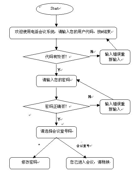 說(shuō)明:用戶代碼、密碼等電話會(huì)議資料管理員可以通過(guò)客戶端管理系統(tǒng)來(lái)建立。該語(yǔ)音流程也可以通過(guò)Smatele語(yǔ)音流程生成器來(lái)改寫,方法為在Server端執(zhí)行程序的當(dāng)前路徑下編寫一個(gè)名為User.dat的語(yǔ)音流程腳本文件即可,具體方法可以參閱《SmarTele流程生成器說(shuō)明》和user_con.dat說(shuō)明;