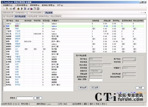系統(tǒng)提供話費(fèi)的預(yù)算控制和預(yù)存控制(押金管理)功能,用戶可以選擇使用其中一種或都不使用,當(dāng)電話費(fèi)用達(dá)到設(shè)定的費(fèi)用金額,系統(tǒng)按照設(shè)定的處理方式(降低分機(jī)撥打電話的等級(jí))進(jìn)行。