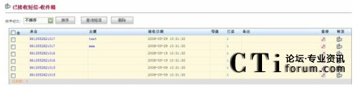 通過Web方式的客戶端收取用戶發(fā)來(lái)的短信,可以按日期時(shí)間、主題、內(nèi)容、主叫號(hào)碼等進(jìn)行查詢和排序;將收到的短信轉(zhuǎn)發(fā)給其它個(gè)人手機(jī)或用戶群;
