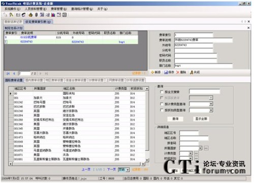 用于設(shè)定撥打不同地區(qū)電話的費(fèi)率以及節(jié)假日的折扣率。對(duì)于較復(fù)雜的計(jì)費(fèi)方式,同一個(gè)地區(qū)的電話還可以設(shè)定多種費(fèi)率。