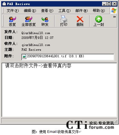 - 電子郵件提交:用戶使用電子郵件應(yīng)用程序(如Notes或 Outlook)直接提交傳真,傳真文件為 tif、word、excel、txt、html、jpg等格式的文件;