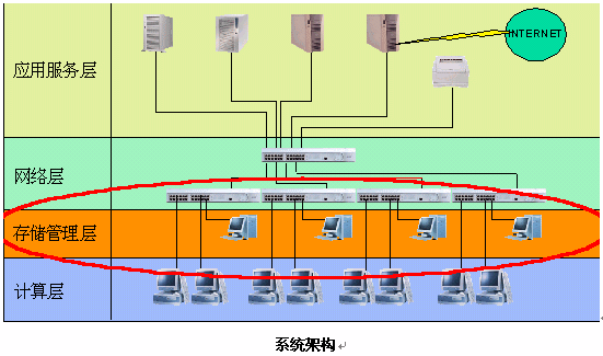 存儲(chǔ)管理層的管理機(jī)主要承擔(dān)著為E&E終端提供軟件(操作系統(tǒng)和應(yīng)用軟件)的服務(wù)。根據(jù)實(shí)際需要,管理機(jī)可以提供多種操作系統(tǒng)的環(huán)境和多種應(yīng)用的環(huán)境。每臺(tái)管理機(jī)最大可以為60臺(tái)的E&E終端提供服務(wù),可以實(shí)現(xiàn)操作系統(tǒng)、應(yīng)用、配置的統(tǒng)一分發(fā)和維護(hù)。