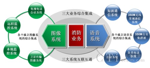 綜合集成建設(shè)主要內(nèi)容:建設(shè)一個(gè)統(tǒng)一的綜合管理平臺(tái),將軟硬件進(jìn)行高度集成,實(shí)現(xiàn)圖像、語音、數(shù)據(jù)高度融合,形成統(tǒng)一的信息資源樹,按需調(diào)用,資源共享。并通過網(wǎng)絡(luò)集成,實(shí)現(xiàn)各類基礎(chǔ)通信網(wǎng)絡(luò)“通道化”,形成統(tǒng)一互聯(lián)的IP網(wǎng);通過音頻集成,實(shí)現(xiàn)語音交換“總機(jī)化”,語音終端“分機(jī)化”;通過視頻集成,實(shí)現(xiàn)視頻管理 “頻道化”;通過數(shù)據(jù)集成,實(shí)現(xiàn)數(shù)據(jù)管理 “目錄化”,全面滿足日常管理和戰(zhàn)時(shí)通信保障的要求。綜合集成項(xiàng)目包括圖像綜合管理平臺(tái)、語音綜合管理平臺(tái)、一體化消防業(yè)務(wù)平臺(tái)等三個(gè)部分的建設(shè)。