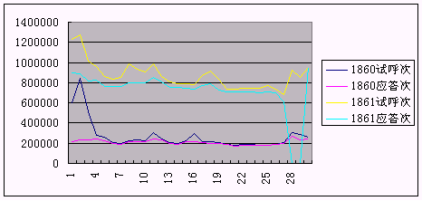 通過對(duì)各曲線均值與峰值的對(duì)比,也可以清晰的看出,新1861系統(tǒng)的上線不僅有效的提高了1861熱線的接通率,增大了系統(tǒng)容量,而且對(duì)1860系統(tǒng)也進(jìn)行了大大的緩解。