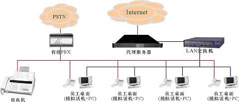 某中小企業(yè),無(wú)分支機(jī)構(gòu),現(xiàn)時(shí)有一個(gè)由傳統(tǒng)PBX構(gòu)建的電話系統(tǒng)和一個(gè)以太局域網(wǎng),兩者相互獨(dú)立,局域網(wǎng)通過(guò)一臺(tái)代理服務(wù)器用以太網(wǎng)或ADSL方式接入Internet。企業(yè)的語(yǔ)音通信由電話系統(tǒng)實(shí)現(xiàn);員工的日常工作需要使用計(jì)算機(jī)以及多種局域網(wǎng)和Internet服務(wù)。
