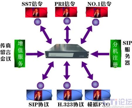 傳統(tǒng)信令協(xié)議方式包括N0.7信令、NO.1信令、ISDN-、 FXO(環(huán)路中繼)VOIP 信令協(xié)議包括SIP、H.323,同時支持多種協(xié)議/多種中繼的接入,不用增加、更換任何硬件設(shè)備和任何配件即可靈活地實現(xiàn)傳統(tǒng)交換機與軟交換網(wǎng)絡(luò)的無縫連接,為企業(yè)實現(xiàn)IP通信降低了門檻。