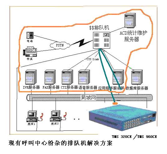 除AVAYA外,目前所有的傳統(tǒng)交換機(jī),都只是個(gè)PBX,用戶既不能編程,也沒可編程的CTI技術(shù),只承擔(dān)了系統(tǒng)中一個(gè)很小的排隊(duì)功能(ACD),該解決方案的關(guān)鍵任務(wù)仍然由語音卡+工控機(jī)的平臺來完成:IVR、CTI、FAX、錄音等系統(tǒng)的幾乎全部主要功能,因此無論從成本上還是技術(shù)的領(lǐng)先性、可靠性和穩(wěn)定性,可擴(kuò)展性和可維護(hù)性上,絕不是先進(jìn)的解決方案,而只是基于品牌的導(dǎo)向;而對于中小企業(yè),更多地去關(guān)心產(chǎn)品的適用性,而根本耗不起品牌。因此,從上圖可分析,傳統(tǒng)排隊(duì)機(jī)的解決方案本身很落后,性價(jià)比也很低。