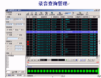 - 可按日期、時(shí)間、電話(huà)號(hào)碼、線(xiàn)路、人員等條件進(jìn)行查詢(xún)放音;支持語(yǔ)音卡放音、聲卡放音等。