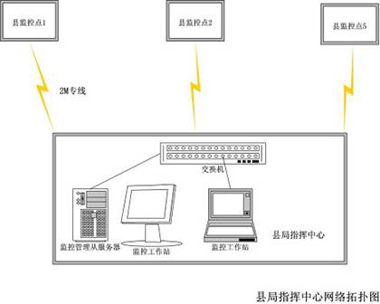 網(wǎng)絡(luò)視頻服務(wù)器對前端監(jiān)控點攝像機采集的視頻信號進行編碼壓縮處理后,通過2M專線上傳到市公安局監(jiān)控中心。