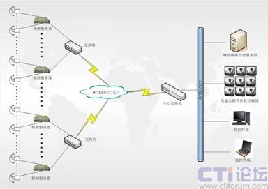 本系統(tǒng)網(wǎng)絡傳輸采用有線、光纖及無線相結(jié)合的方式,在有條件的地方采用有線的方式,傳輸距離較遠時采用光纖傳輸,在布線比較困難的情況下采用無線傳輸?shù)姆绞健?br />