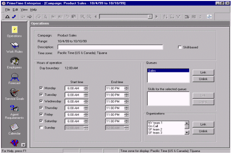 WFMS允許管理者通過設(shè)定技能參數(shù)和可能的工作量來創(chuàng)建和假設(shè)出不同的排班表。把上面的設(shè)定和特殊日期的工作量聯(lián)系起來,加以WFMS的附加工具,管理者將迅速的對建立的排班進行評估。呼叫組可以根據(jù)預(yù)測的工作量進行調(diào)整,員工也可能被調(diào)到一個特定的呼叫組回答特定的問題。所以兼職員工輔以全職員工,這是最好的組合方式,可以實現(xiàn)預(yù)測出的每一個排班方式。而且WFMS會不斷地從ACD中提取數(shù)據(jù),不斷地預(yù)測,找到最完美的平衡點。這種方式將使技能組的設(shè)置和人員排班的工作更加簡單,做的更好。