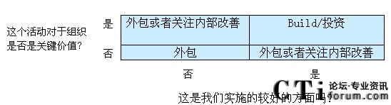 如果這個(gè)活動(dòng)是關(guān)鍵任務(wù),而且有時(shí)候你有穩(wěn)固的內(nèi)部資源和已經(jīng)證明的能力,那么你很可能想保持自建活動(dòng),并內(nèi)部投資其增長。但是,如果這個(gè)活動(dòng)不是那么重要,或者你現(xiàn)在在做的事并沒有做好,那么外包的意義就更大。