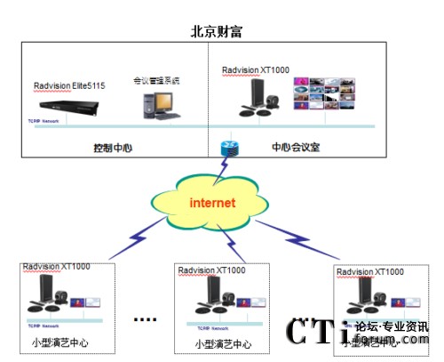 通過多次激烈的討論和無數次的論證,北京市財富中心領導最終決定通過打造一套高清視頻會議平臺系統(tǒng)來解決這一棘手的問題。財富中心的領導希望通過這套高清視頻會議平臺系統(tǒng)來提升全體員工的整體工作效率。該項目最終以RADVISION Elite MCU為多媒體通信平臺核心進行搭建,前期以多媒體會議室及演藝中心為主要接入點,通過RADVISION SCOPIA XT1000高清會議室終端來實現(xiàn)高清1080P的視音頻交互;同時,希望在后期的建設中,能夠通過固定電話、移動電話以及3G網絡的接入,來實現(xiàn)真正的多媒體統(tǒng)一通信。