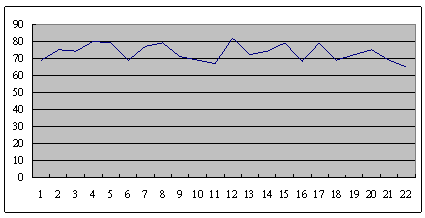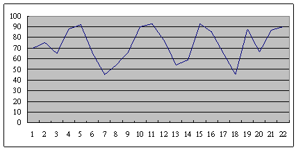 這是另外一個(gè)呼叫中心的服務(wù)水平,也是從早上8點(diǎn)開(kāi)始,一直到晚上6點(diǎn),每隔半個(gè)小時(shí)的服務(wù)水平趨勢(shì)。雖然平均服務(wù)水平也是在73左右,但震蕩幅度卻小了很多,服務(wù)水平只在81到68這中間震蕩。