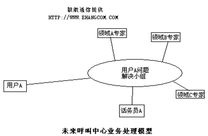 未來(lái)的呼叫中心里服務(wù)每個(gè)用戶的不是單個(gè)話務(wù)員,而是一個(gè)隨需組建的專(zhuān)家組。話務(wù)員根據(jù)用戶的問(wèn)題,在適當(dāng)?shù)臅r(shí)候邀請(qǐng)相應(yīng)專(zhuān)家參加到用戶問(wèn)題解決小組,話務(wù)員負(fù)責(zé)小組內(nèi)的信息協(xié)調(diào)和流程控制。比如用戶投訴沒(méi)有收到訂貨,話務(wù)員可以加入該用戶的跟蹤業(yè)務(wù)員,當(dāng)從業(yè)務(wù)員處了解到該用戶有欠款記錄,那么話務(wù)員可以把財(cái)務(wù)人員加入到臨時(shí)問(wèn)題解決小組,財(cái)務(wù)人員可以準(zhǔn)確的告訴用戶是那筆款有問(wèn)題,需要處理,這樣可以當(dāng)場(chǎng)讓用戶明白問(wèn)題的根源,并還能得到財(cái)務(wù)人員的處理建議和后續(xù)操作流程指導(dǎo),做到溝通高效,有效,而且真正能減少抱怨,提高業(yè)務(wù)效率。