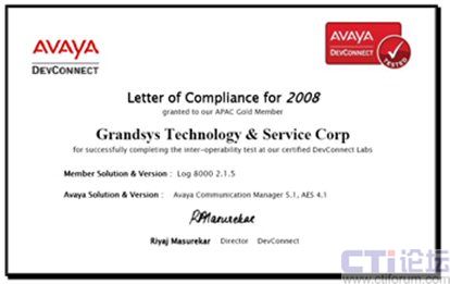 2008年7月 —Grandsys(宏盛高新技術(shù)有限公司)宣布其自創(chuàng)品牌[Grandsys LOG8000 錄音與質(zhì)檢解決方案]正式通過(guò)AVAYA DevConnect 的認(rèn)證。Grandsys正是全球?yàn)閿?shù)不多的已經(jīng)通過(guò)該項(xiàng)認(rèn)證的AVAYA 合作伙伴之一,包含知名廠家Nice及Verint等,這代表Grandsys的技術(shù)已達(dá)到國(guó)際知名廠家的水平, 國(guó)內(nèi)客戶也因此有機(jī)會(huì)享受到最優(yōu)質(zhì)的產(chǎn)品及服務(wù)。