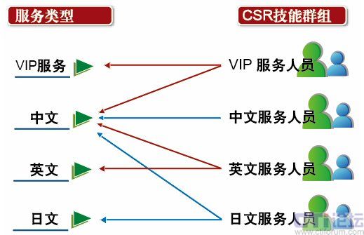 1. 屬于多技能的客服人員能夠服務(wù)的話務(wù)量隊列也就越廣,如,主要服務(wù)「一般英文」的客服人員能夠服務(wù)「一般服務(wù)英文」與「一般服務(wù)中文」的來電。