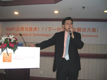 2005年5月19日下午,海狼科技的首席執(zhí)行官----Danny Lu博士,在長城飯店的蘭花廳舉辦了"X彩虹軟交換:下一代新電信的完整解決方案"專題演講會,吸引了眾多運(yùn)營商及服務(wù)商參加,在演講會上,鹿博士闡述了VOIP在美國的發(fā)展與中國的發(fā)展趨勢。并詳盡介紹了"X彩虹軟交換"的完整商務(wù)功能及運(yùn)營方案,并與參會者積極互動式交流,解答了眾多參會者的問題。