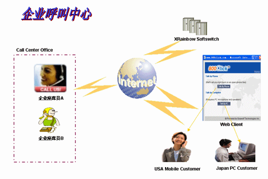 企業(yè)呼叫中心通過WEB方式解決可以提高10倍成交機(jī)會(huì),您的客戶將享受“在線客服”的免費(fèi)電話服務(wù)。很多人在訪問商業(yè)網(wǎng)站的時(shí)候可能都有過這樣的經(jīng)歷:覺得網(wǎng)上提供的資料不夠詳細(xì),希望通過詢問客服人員來獲取更細(xì)致和個(gè)性化的信息。用戶只要點(diǎn)擊一下網(wǎng)頁(yè)上服務(wù)中心的鏈接就可以和中心的客服人員進(jìn)行直接的溝通。用戶甚至不需要知道服務(wù)中心的號(hào)碼。使用戶獲得更為有效的直接通話服務(wù)。為您的網(wǎng)站建立起專業(yè)的呼叫中心,既是網(wǎng)絡(luò)推廣、網(wǎng)絡(luò)營(yíng)銷的助手又是客戶關(guān)系管理的專家。