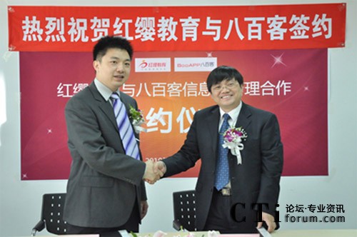 CTI論壇(ctiforum)5月13日消息(記者 潘婷婷):5月11日,八百客(北京)軟件技術有限公司與北京紅纓時光科技發(fā)展有限公司正式簽訂“信息化管理合作”協(xié)議。以幼教著稱的紅纓教育,將采用中國知名管理軟件800CRM,使企業(yè)管理實現質的飛躍。