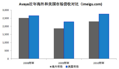 2008、2009、2010財(cái)年Avaya總營(yíng)收分別為49.23億美元、41.50億美元、50.60億美元,2009財(cái)年?duì)I收受宏觀經(jīng)濟(jì)(金融海嘯)因素影像而出現(xiàn)15.7%的下降,2010財(cái)年Avaya公司收購(gòu)原北電的企業(yè)通信部門(mén)(NES),受此合并報(bào)表影響和經(jīng)濟(jì)復(fù)蘇因素,2010財(cái)年?duì)I收相比2009財(cái)年增長(zhǎng)21.9%。