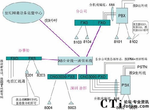 總公司和各個(gè)分公司之間語(yǔ)音電話(huà)和傳真交流密集,并且每周會(huì)有1~2次10人以?xún)?nèi)的電話(huà)會(huì)議召開(kāi)。客戶(hù)現(xiàn)在公布出去的是總公司深圳的號(hào)碼 075526668888,各分公司公布當(dāng)?shù)氐氖性?huà)號(hào)碼或業(yè)務(wù)人員的手機(jī)。