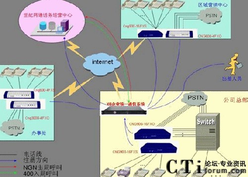 總部現(xiàn)在使用的為傳統(tǒng)PBX設(shè)備,配置為50路外線(xiàn)和200內(nèi)線(xiàn),分機(jī)為8前綴4位的分機(jī)號(hào)碼,如8001分機(jī)。32個(gè)的辦事處使用電信匯線(xiàn)通或直接的PSTN線(xiàn)路,2個(gè)的區(qū)域營(yíng)銷(xiāo)中心使用匯線(xiàn)通或直接的PSTN線(xiàn)路,2個(gè)分公司使用的小型PBX?偛磕壳吧暾(qǐng)了4條2M的ADSL線(xiàn)路做為一個(gè)集合,沒(méi)有固定的IP地址,各個(gè)分公司也多使用ADSL上網(wǎng)或電信的小區(qū)寬帶上網(wǎng)。