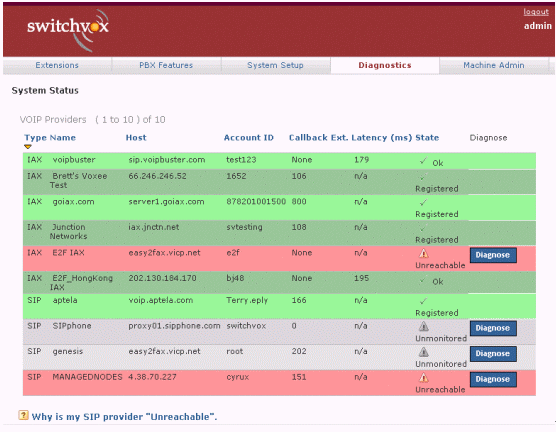 圖5中綠色表示正常,紅色表示出現(xiàn)問(wèn)題,白色表示從沒(méi)有接通過(guò)。如果你按診斷(Diagnose),系統(tǒng)便會(huì)通過(guò)自動(dòng)測(cè)試,告訴你問(wèn)題出自哪一部分。如果需要對(duì)每一個(gè)的詳細(xì)解析,可以按底部Why這個(gè)標(biāo)題,找尋答案。類似的終端、話機(jī)等配置、硬件診斷等,也有非常明了的界面與解決問(wèn)題的辦法。