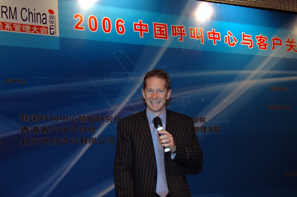 2006年4月3日至5日,2006中國呼叫中心與客戶關(guān)系管理大會(huì)在北京國際會(huì)議中心隆重召開,以下是K8主題演講實(shí)錄:西蒙.克瑞斯:早上好!這是我的助手,大家歡迎!我想傳達(dá)呼叫中心的問題節(jié)奏會(huì)快一點(diǎn),有高級(jí)呼叫中心十個(gè)課題。不是對(duì)初學(xué)者的,也不是對(duì)新呼叫中心的,是幫助呼叫中心行業(yè)能夠成熟的,也就是說呼叫中心行業(yè)的兒童不宜的題材!人人談呼叫中心的時(shí)候就談到這個(gè)模型(PPT)三個(gè)因素,人、流程和技術(shù)。但是這個(gè)模型沒有包括真正只有戰(zhàn)略意義的呼叫中心的因素,這個(gè)模型對(duì)運(yùn)行家、工廠是非常有效的。現(xiàn)在我們用的這個(gè)模型是叫(PPT)模型,F(xiàn)在言歸正傳,開始!