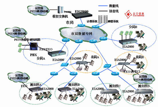 公安系統(tǒng)作為一家話務量較大的國家職能部門,平時各個分局,各個派出所之間及上下級之間的電話、傳真等交流非常多,每月支付的話費數(shù)目相當可觀,公安部門急需找到一種價格更便宜、服務更周到,同時使用便捷的通話解決方案,以降低辦公費用,提高工作效率。采用了深圳眾方信息的VoIP解決方案,能使得公安部門整體話費節(jié)省了至少50%以上,而且能實現(xiàn)多種業(yè)務的綜合處理,包括語音、數(shù)據(jù)、視頻、圖像等。