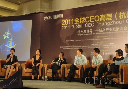 CTI論壇(ctiforum)9月21日消息(記者 張潔):9月13日下午,2011全球CEO高層(杭州)論壇在凱悅大酒店舉行。本次論壇由聯合國工業(yè)發(fā)展組織,杭州市人民政府主辦,論壇以“杭州與世界:新興產業(yè)發(fā)展與合作”為主題,圍繞浙江企業(yè)在新興產業(yè)轉型創(chuàng)新過程中的關注點即新興產業(yè)技術分享、商業(yè)模式探討以及融資渠道開拓等三方面,攜手幾十位位國內外著名CEO共同探討解決之道,并借助會議的延展尋求可行之道。