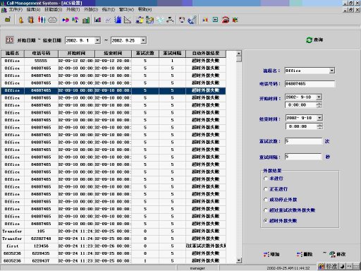 使用人工撥號,座席化了許多的時間來試圖接通客戶電話。當(dāng)使用自動預(yù)測式撥號時,系統(tǒng)代替座席處理電話被真人接聽前的一切事物,只有當(dāng)系統(tǒng)偵測到有真人接聽電話時,才把電話接給座席。因此,座席可以把大部分的時間化在與客戶的交談中,極大的提高了座席的有效工作時間,提高了座席和客戶服務(wù)中心的生產(chǎn)力和工作效率。