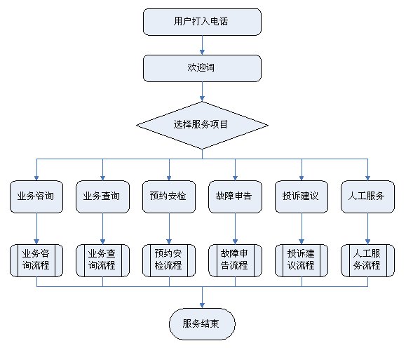 2)業(yè)務(wù)查詢:用戶可通過受理人員或自動語音應(yīng)答系統(tǒng)根據(jù)用戶要求從數(shù)據(jù)庫查詢資料,然后通過語音方式播報或送到用戶指定傳真機或其他終端設(shè)備上。應(yīng)考慮以后用web方式查詢氣費等數(shù)據(jù),以不動及主體設(shè)備方式平滑升級。